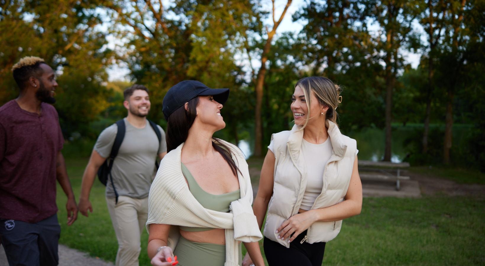 • a group of people walking in a park
