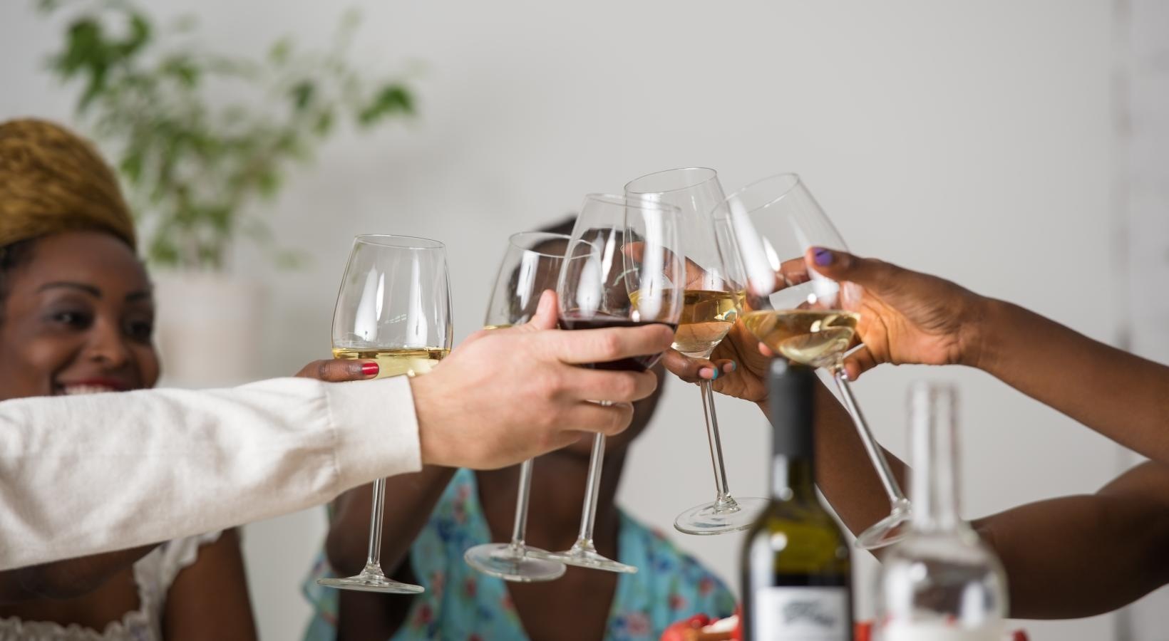 • a couple of people holding wine glasses